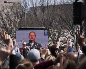 Gun violence activist Emma González speaking at the March for Our Lives on March 24, 2018.